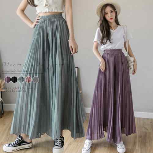 レディース シフォンフレアパンツ 体型カバー ゆったりスカンツ 大人お洒落 ボトムスハイウエスト きれいめ 着やせズボン 無地ワイドパンツ黒 九分丈ガウチョ春夏 らくちんパンツ薄手