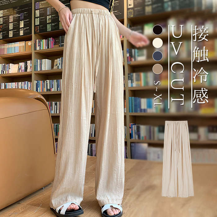 快適~ 接触冷感 ストレート ワイドパンツ Summer pants プレゼント 贈り物 ギフト 母の日 20代 30代 40代 50代 UV 日焼け止め UV対策 日焼け対策 紫外線対策 ♪