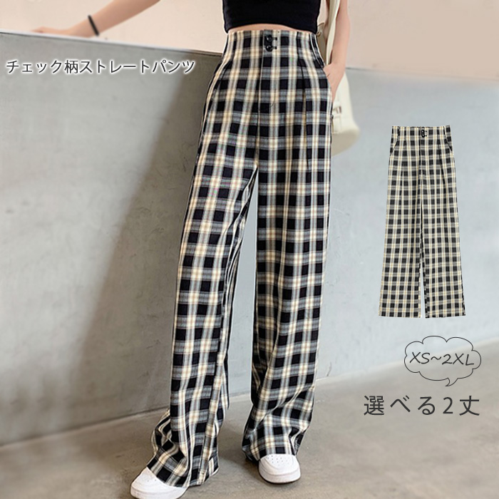 チェック柄 パンツ レディース ボトムス ストレートパンツ イージーパンツ カジュアルなストリート感で、おしゃれにイージースタイルを楽しめます
