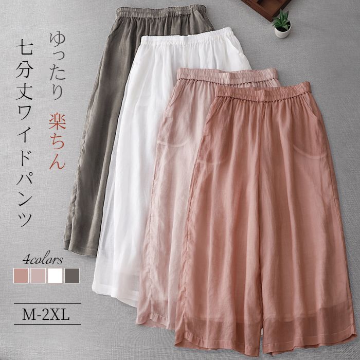カジュアルにも綺麗めにも~ 大人の リネン ワイドパンツ Linen pants ♪レディースファッション ボトムス パンツ