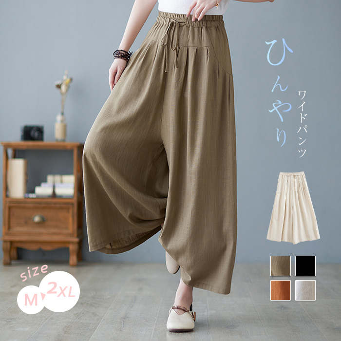 パンツ ワイドパンツ ガウチョパンツ 冷感 涼しい カジュアル ナチュラル 森ガール 通勤 通学 日常 ディリー 着心地 お出かけ 外出 普段使い♪