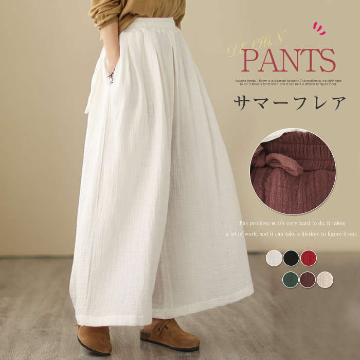 即手に入る サマー ワイドパンツ Linen pants ♪レディースファッション ボトムス パンツ