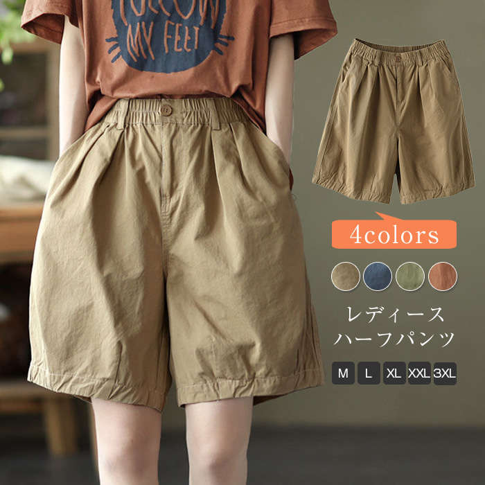 レディース ハーフパンツ 美脚 美尻 ショート丈 短パン ウエストゴム ゆったり 20代 30代 40代