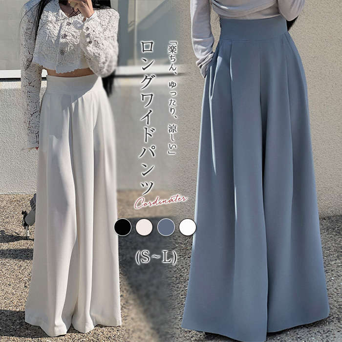 楽ちんきれい美脚ワイドパンツ ブラック ベージュ ブルー ホワイトレディースファッション ボトムス パンツ