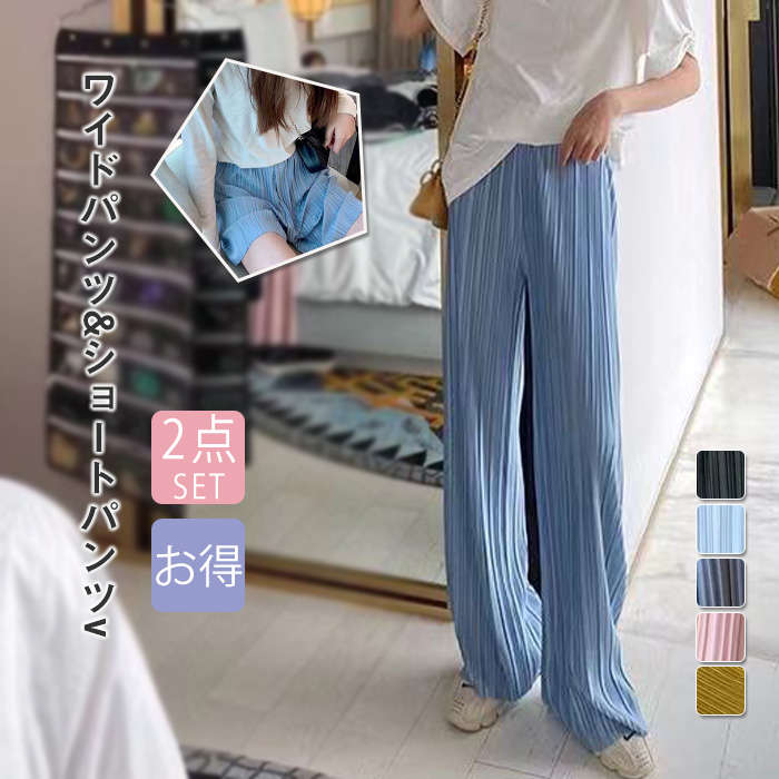 セルフカット 2点セット~ ロングパンツ×短パン Summer Pants イエロー ピンク グレー ブルー ブラック 黄 黒 フリーサイズ プレゼント 贈り物 ギフト 母の日 リゾート 海 夏 ♪