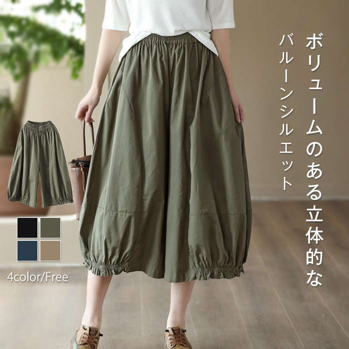 パンツ レディース バルーンパンツ サーカスパンツ 7分丈 ボトムス ワイドパンツ ガウチョパンツ スカーチョ 薄手 ゆるパンツ ボトムス 体型カバー 春 夏 ウエストゴム 無地 着痩せ 美脚 通勤