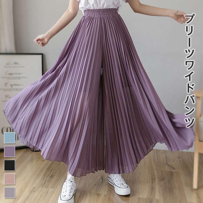 上品に広がるワイドシルエットプリーツパンツ wide pantsレディースファッション ボトムス パンツ