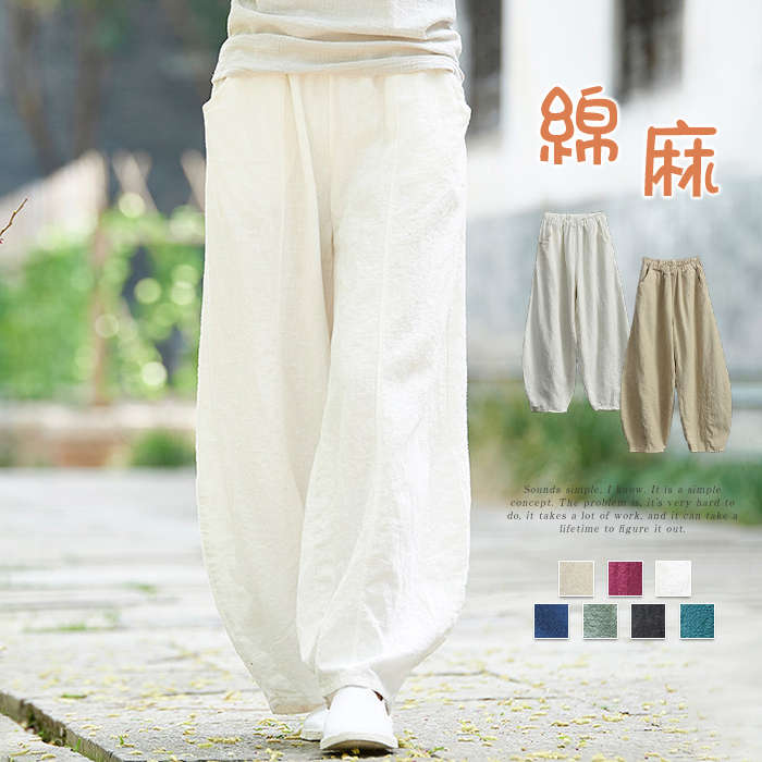 楽ちん~ 綿麻素材 リラックスパンツ Linen pants ♪レディースファッション ボトムス パンツ