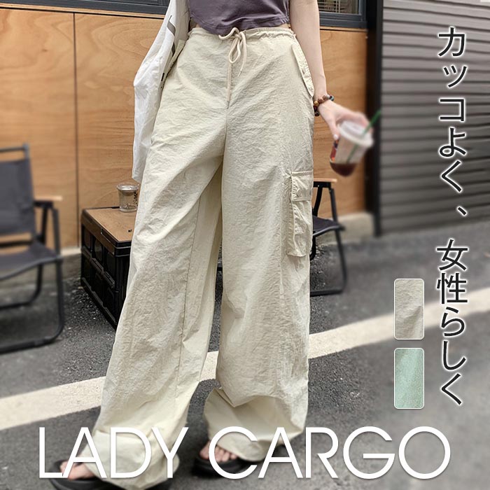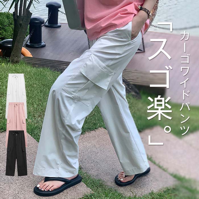 パンツ レディース ボトムス カーゴパンツ ワイドパンツ 長ズボン ロング丈 膝下 ドロスト ウエストゴム ゆったり 楽ちん 夏