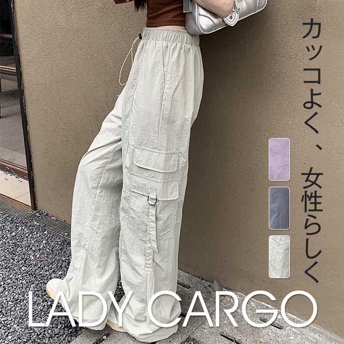 かっこよく 女性らしく カーゴパンツ パンツ レディース ワイドパンツ ボトムス カーゴ ワイド ワークパンツ ジョガーパンツ ゴム 黒 春 夏