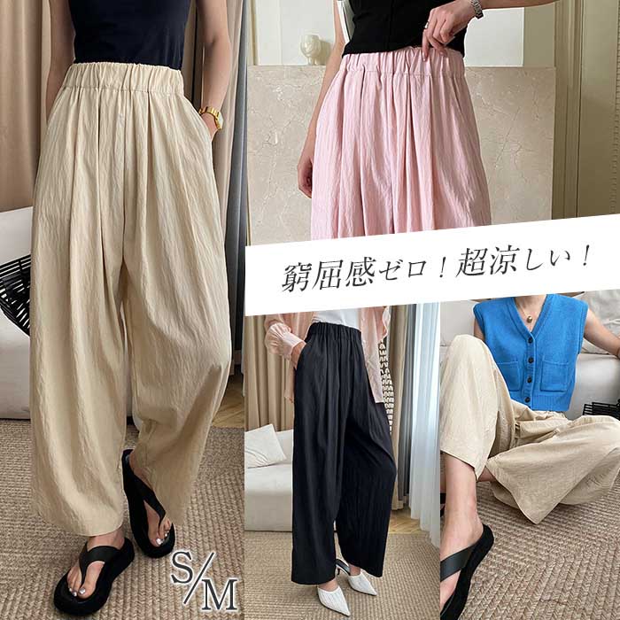 季節感up~ 綿麻風 ワイドパンツ Wide pants ♪レディースファッション ボトムス パンツ