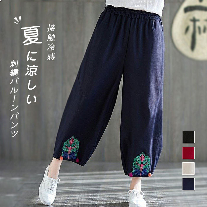 エスニックパンツ ワイドパンツ レディース 大きいサイズ ポケット 涼しい 春夏 ゆったり 九分丈 接触冷感 サルエルパンツ 春物 春夏 春服 プレゼント