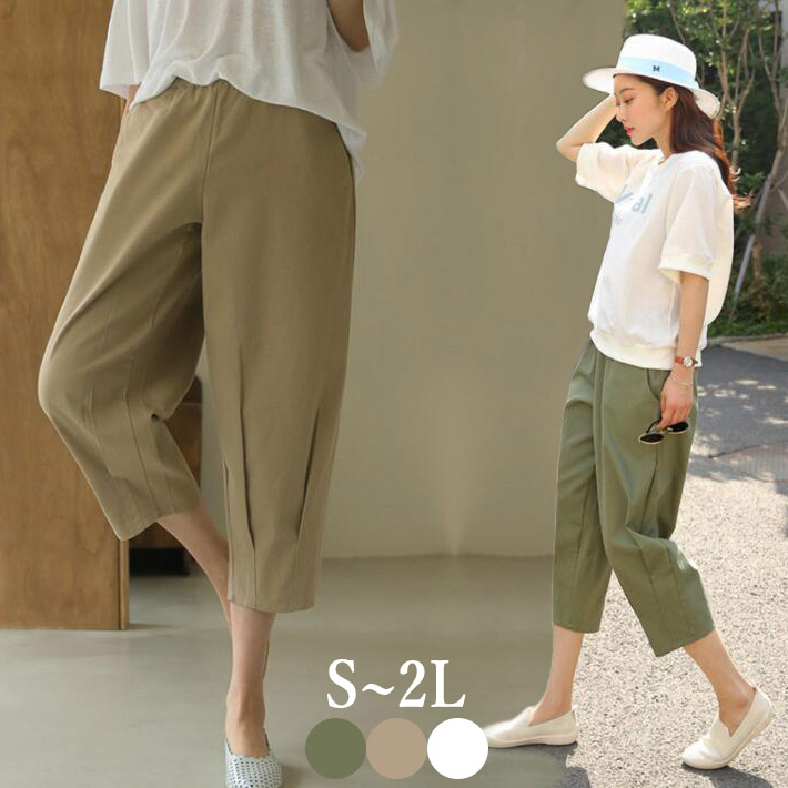 XS~3L 9分丈パンツ 薄手 体型カバー ウェストゴム 春夏 シンプルレディースファッション ボトムス パンツ