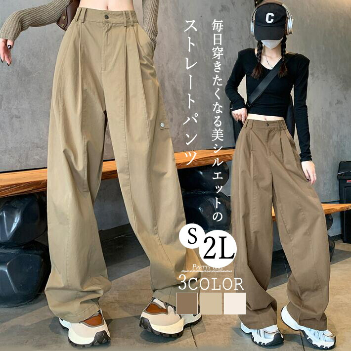 チノパンツ ワイドパンツカーゴパンツベイカーパンツ ロングパンツカーゴパンツレディースストレートズボンボトムス体型カバー ロング着痩せ楽ちんゆったり大きサイズ春 夏 SM L2L
