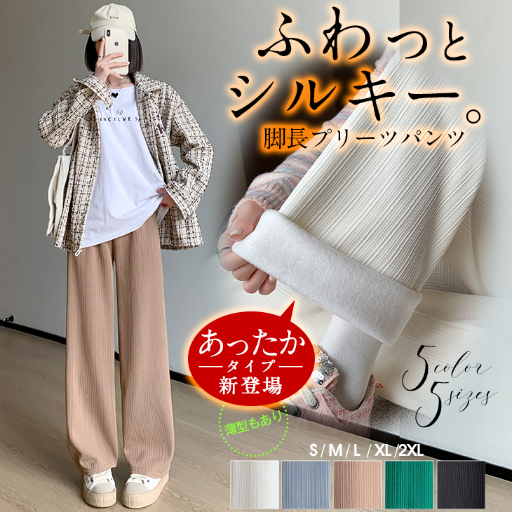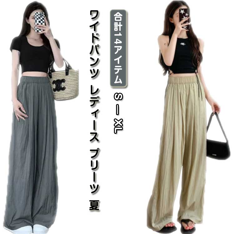 ワイドパンツ レディース 春 夏 ゆったり 2丈選べる 低身長 高身長 無地 プリーツ パンツ ロングパンツ