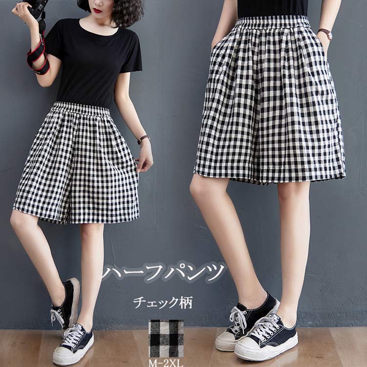 ウェストゴムでラクに穿けるレディースハーフパンツ カジュアルパンツ スポーツ キュロット 大人 かわいい 女子 ショーパン