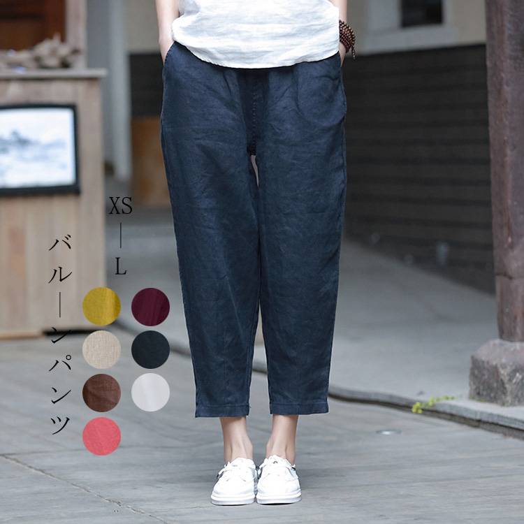 バルーンパンツ 夏 レディース ボトムス パンツ 綿麻 ロング ウェストゴム ポケット付き ゆったり 着痩せ 体型カバー 美脚 シンプル おしゃれ