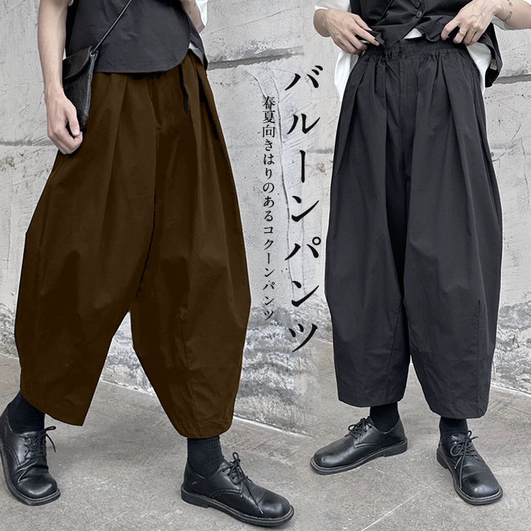 体型カバー力抜群 美しいシルエット感演出するバルーンパンツ 立体的なバルーンシルエットチノパンツ イージー コクーンパンツ トレンド かっこいい 無地 シンプル タックパンツ