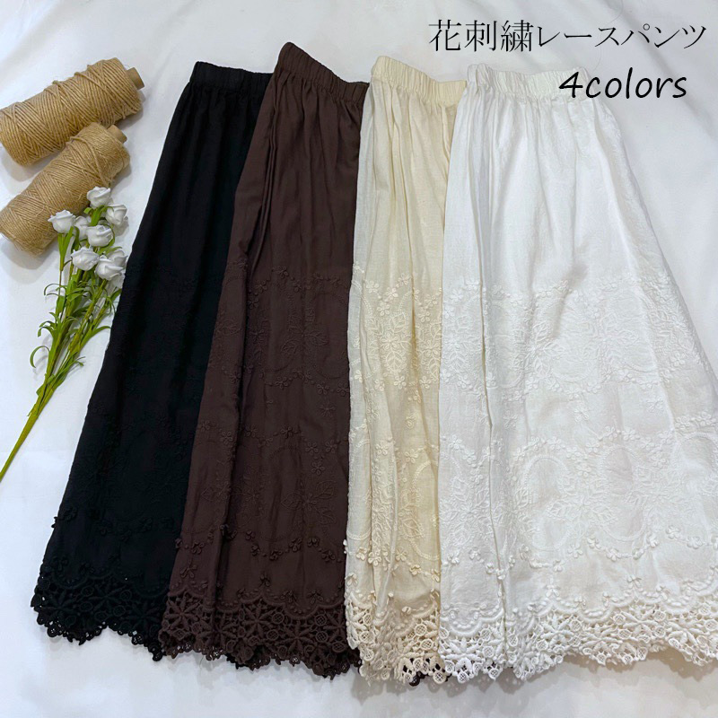 ワンピに重ねるパンツ ペチパンツ レース パンツ レディース 春夏 レースパンツ ペチコートパンツ ボトムス ペチコート 刺繍 柄 花 綿 重ね着 体型カバー 刺繍レース ナチュラル