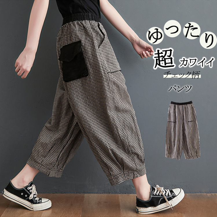夏用薄手バルーンパンツ 柄ポケットカジュアル風 コットン 部屋着 リラックス ナチュラル 可愛い きれいめ 母の日 ママパンツ