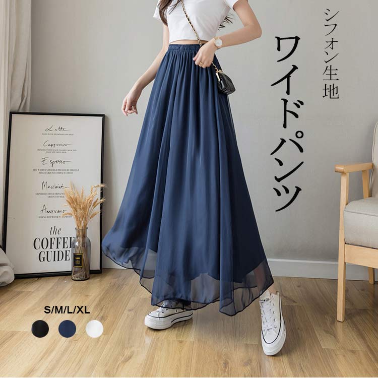全12色 動くたびに表情変わり 一見スカートの様に見えるワイドパンツ 涼しい 夏 パンツ レディース 薄手 体型カバー おしゃれ カジュアル ゆったり ブラック 黒 ホワイト 白 M L