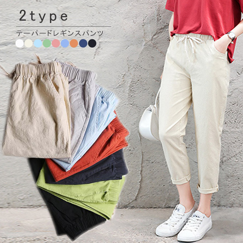 綿麻パンツ リネン100 9分丈 コットン ナチュラルな風合い ゆったりレディースファッション ボトムス パンツ