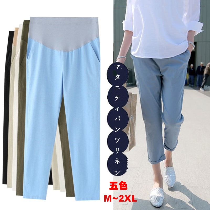 マタニティパンツ ウエストゴム 綿麻パンツお腹サポート マタニティウェア ズボン 授乳服レディースファッション ボトムス パンツ