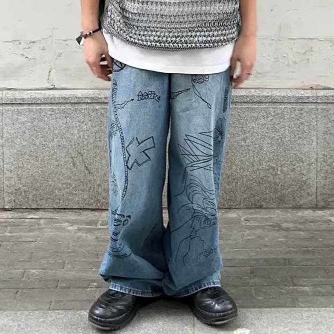 2024夏新作 メンズ服 男女兼用デニムパンツロングパンツワイドパンツストリート系レディースファッション ボトムス パンツ