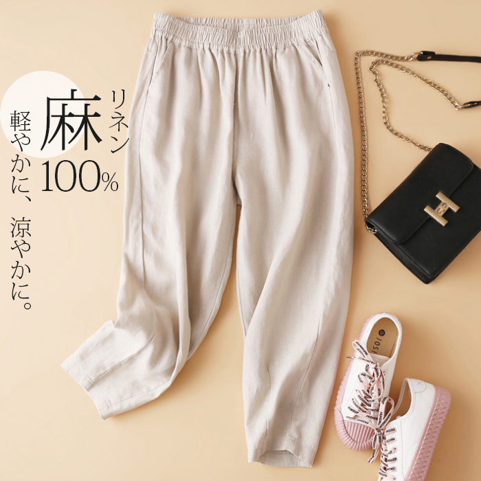 ゴムウエストアンクルパンツ女性用は今季大人気 春夏 クロップド リネン麻 7分丈 ストレッチレディースファッション ボトムス パンツ