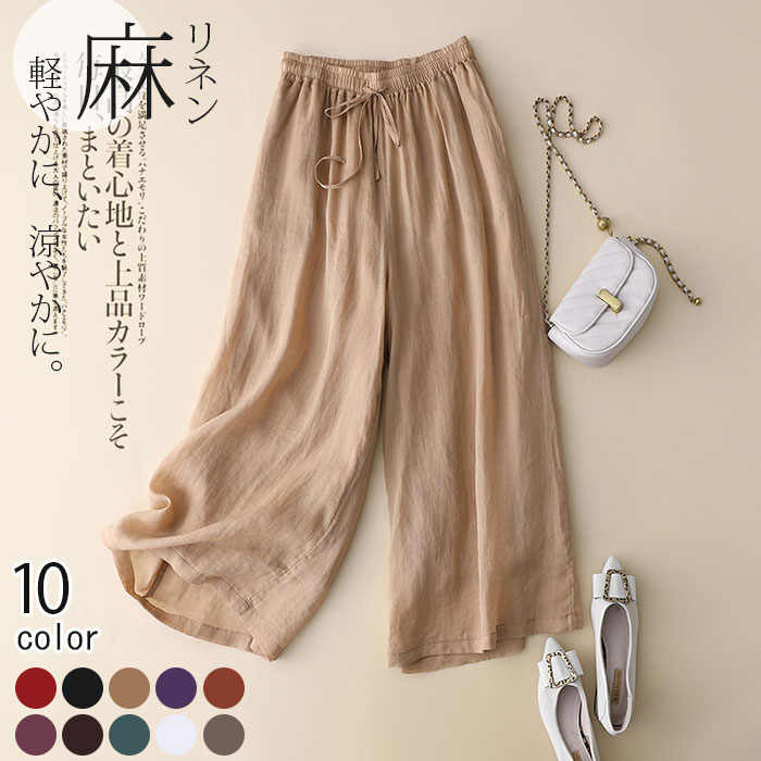おしゃれな麻 パンツ春夏9文丈 キュロットスカートマキシ丈フレアパンツ キレイめ ワイドパンツ 涼しい カジュアル ストレート リラックス