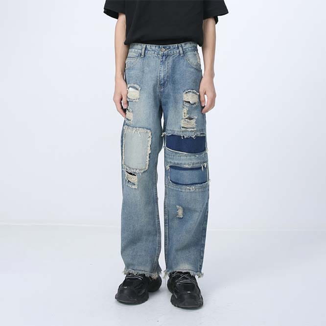 2024春新作 メンズ服 男女兼用デニムパンツワーク風ロングパンツストリート系レディースファッション ボトムス パンツ