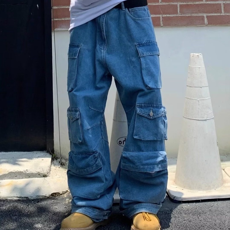 2024夏新作 メンズ服 男女兼用デニムパンツ 多機能ポケット付き ロングパンツ ストリート系レディースファッション ボトムス パンツ