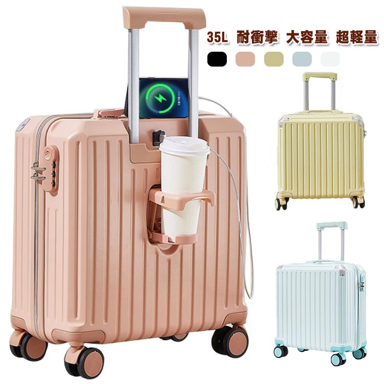 カップホルダー USBポート付き 超軽量 バッグかけフック付き スーツケース ハードケース ハードケース 旅行 かわいい キャリーケース