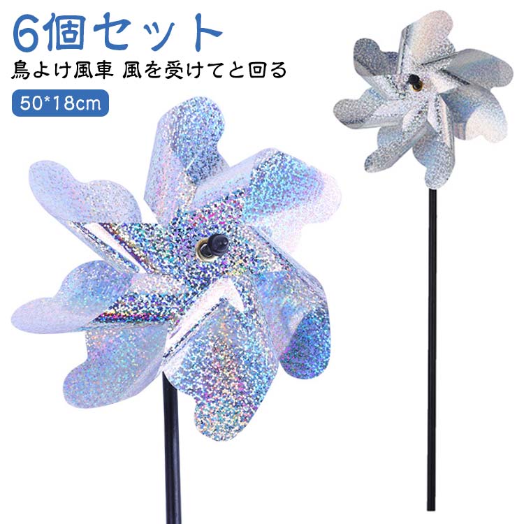 6個セット 鳥よけ グッズ 畑 ガーデン 鳥除け 風で動く風車 鳩よけ カラス対策 ベランダ 風で回る風車 鳥のフン対策 防鳥風車 キラキラ 園芸 田畑園果 カラスよけ 庭 樹園 シルバー 反射 家庭