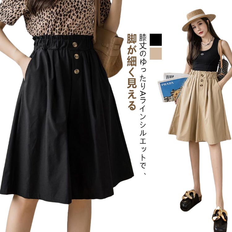 スカンツ ハーフパンツ キュロット 半ズボン フェイクスカート ベージュ ハイウエスト ブラック ボトムス