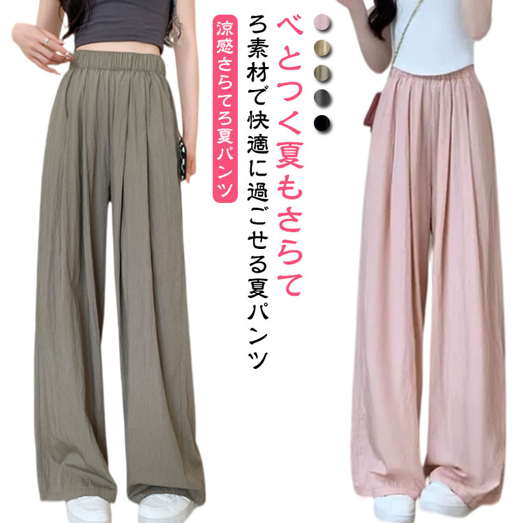 夏 レディース 速乾 長ズボン タック 涼感 チノパン ワイドパンツ 冷感 ゆったり ガウチョパンツ ポケット付き パンツ バギーパンツ 涼しい タック入り ボトムス ワイド 大きいサイズ 韓国 パン