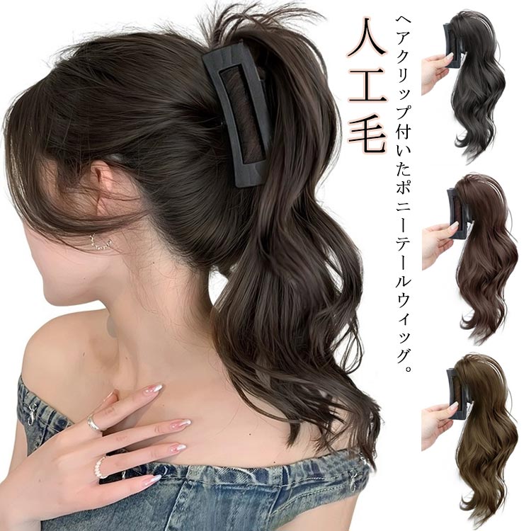 ウイッグ ウィッグ エクステ ポイントウィッグ 部分 自然 つけ毛 ワンタッチ カール ロング 黒 ポニーテール