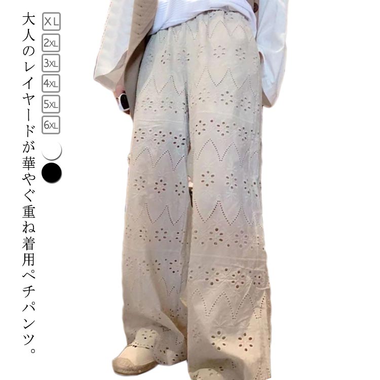 ワイドパンツ レース おすすめ150kg体重対応 レディース インナー レイヤード ガウチョパンツ パンツ 50代 ボトムス 重ね着 レイヤード 夏 下着 体型カバー レースペチパン 20代 30代