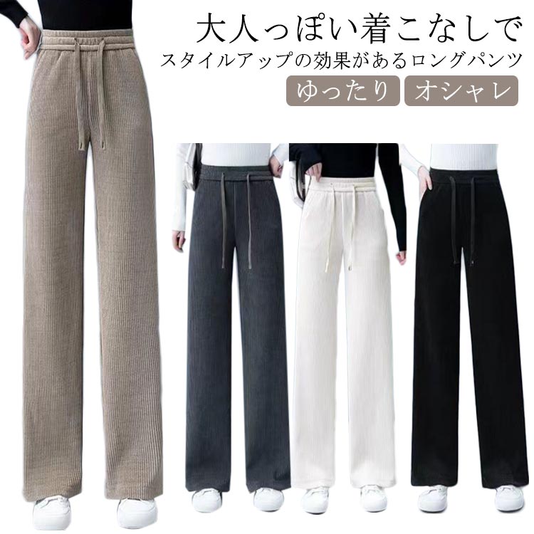 レディース 秋 ロング ズボン ウエストゴム 春 冬 ストレッチ 長ズボン パンツ イージーパンツ 無地 ストレートパンツ 部屋着 夏 ボトムス ゆったり ルームウェア リブ オシャレ イージー リラ
