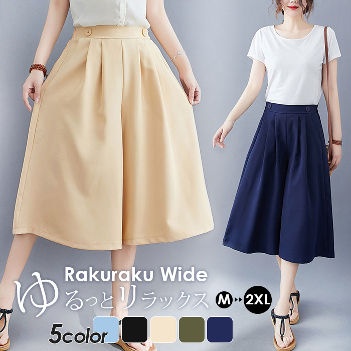 キュロット ガウチョパンツ リラックス カジュアル ウエストゴム ゆったりレディースファッション ボトムス キュロット