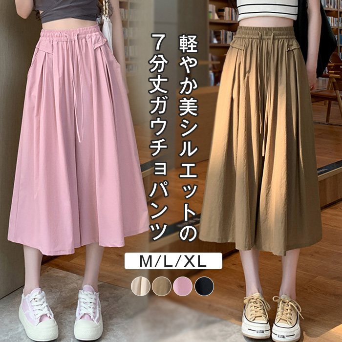 ガウチョパンツ レディース ワイドパンツ 七分丈 キュロット 冷感素材 フレア スカート きれいめ スカーチョ 膝丈 ゆったり 大きいサイズ ハイウエスト フレアパンツ ビッグシルエット チノパンツ