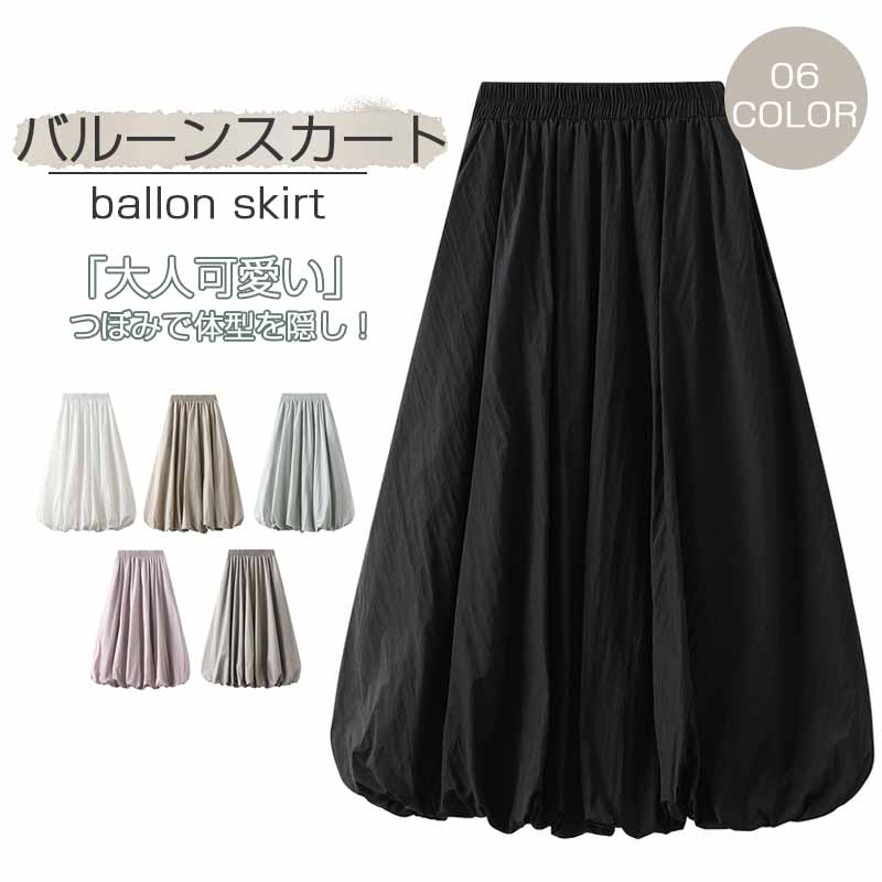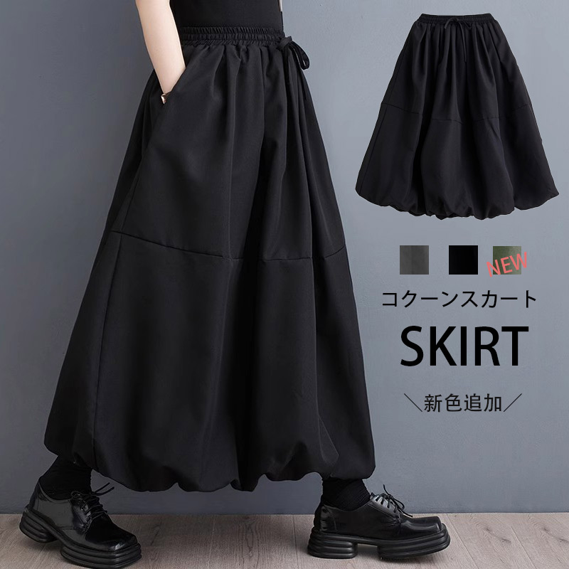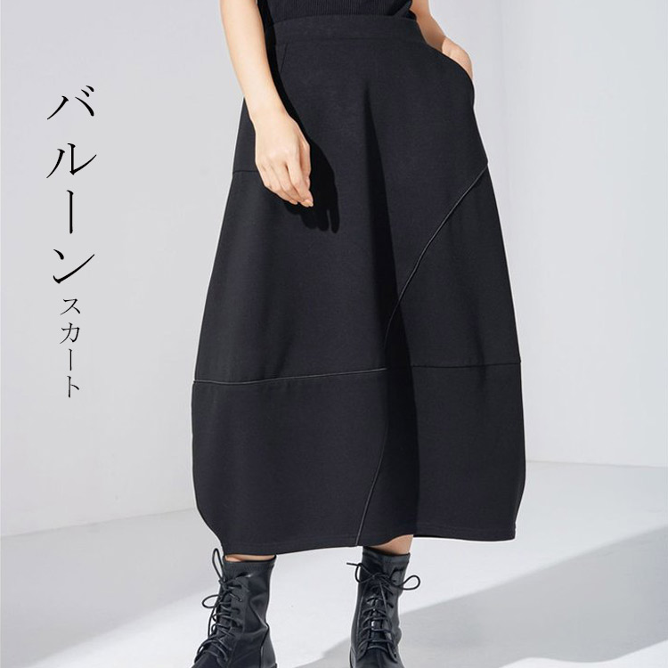バルーンスカート ミモレ丈スカート コクーン コクーンスカート 黒ロングスカート 春ロングスカート マキシスカート 体型カバー きれいめ シンプル ポケット付き 丸み 30代 40代 50代