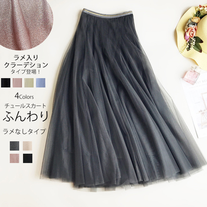 ☆新色登場☆ふんわりボリュームチュールスカート マキシスカート チュール 着こなせ オールシーズン おしゃれ 選べる2タイプ素材