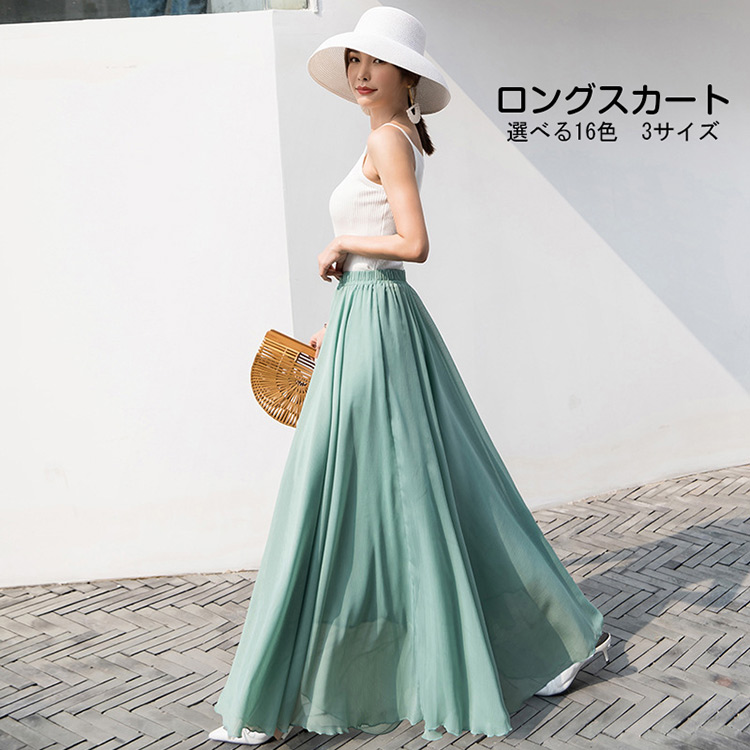 フレアスカート レディース ロング丈 ウエストゴム ボトムス ロングスカート マキシ丈 薄手 可愛い ふんわり ボリューム ゆったり レトロ マキシスカート 20代 30代 40代