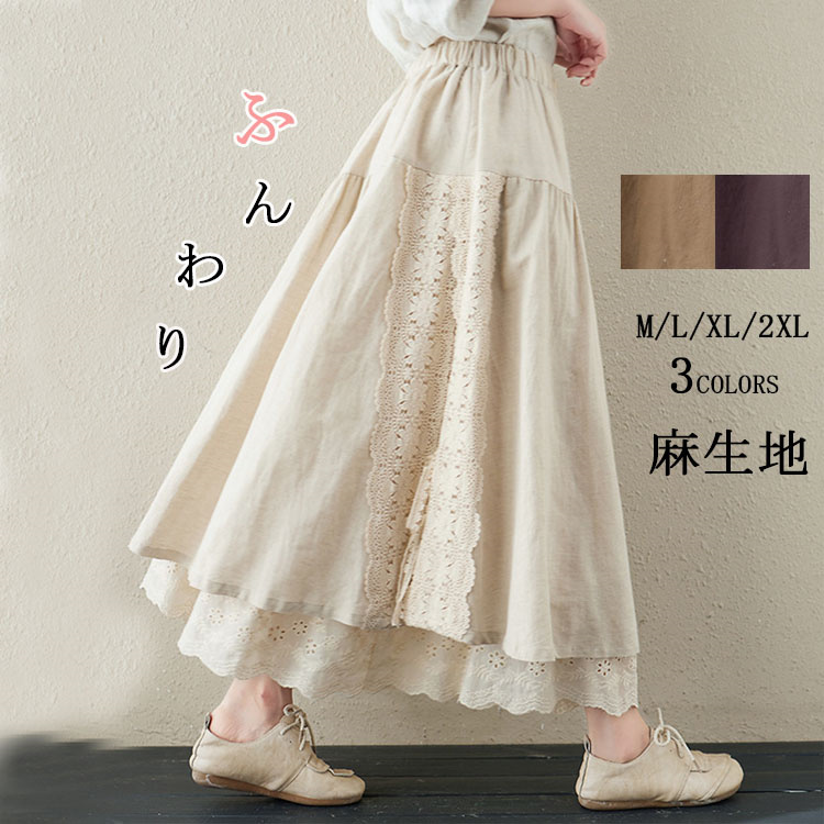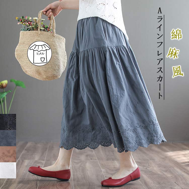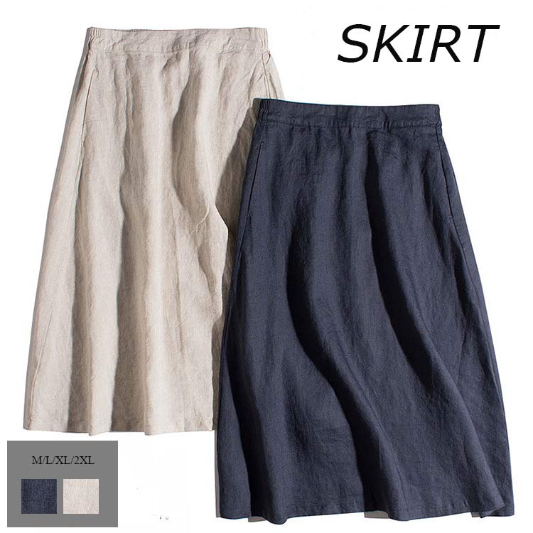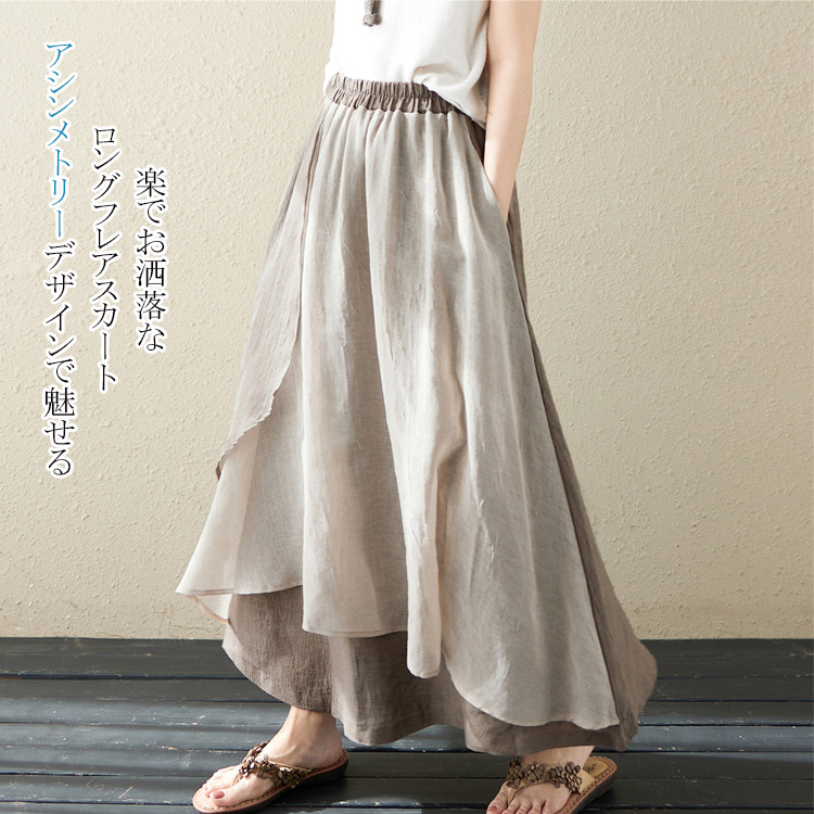 ロングスカート レディース リネン ロング丈 スカート フレアスカート 夏 夏着 無地 ボトムス ゆったり 揺れる ふんわり 体型カバー 着まわせ 楽ちん