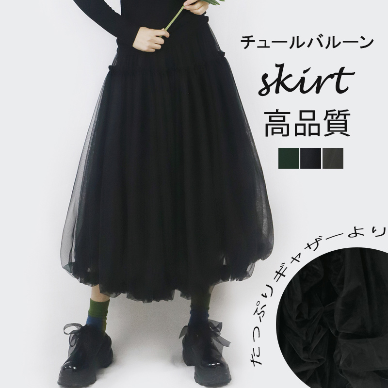 高品質ふんわりシアーチュールスカート チュールバルーンスカート バルーンチュールスカート 黒スカート ロング コクーン バルーン チュール スカート 裏地づき