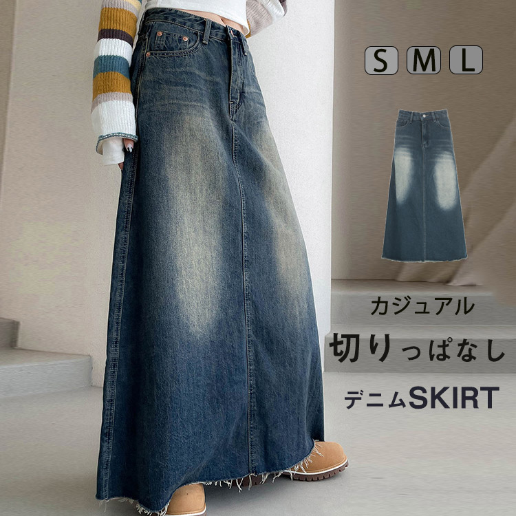 おしゃれ デニムスカート レディース 春夏 ロング ボトムス Aラインデニムスカート マキシスカート デニム ブルー きれいめ 体型カバー カジュアル レトロ リゾート ゆったり