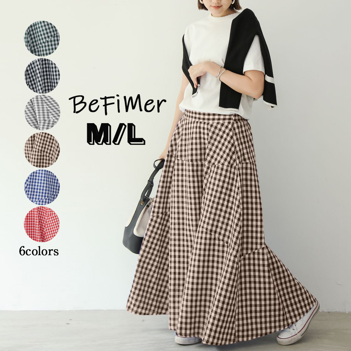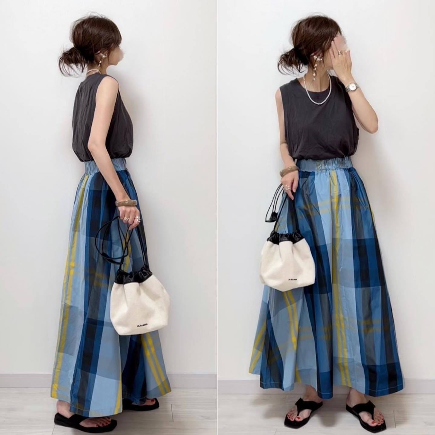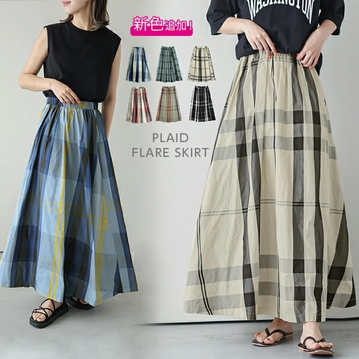 2023春夏新作新色追加スカート チェック柄 ロング丈 フレア ボリューム ボトムス レディース おすすめ おしゃれ