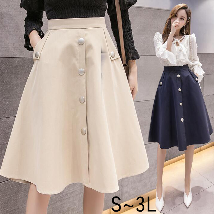 スカート Aラインハイウエストひざ丈 ミディアム 膝丈 ロング丈 美脚オフィスOL 二次会デートオフィスフォマール カジュアルボトムス S M L 2L3L
