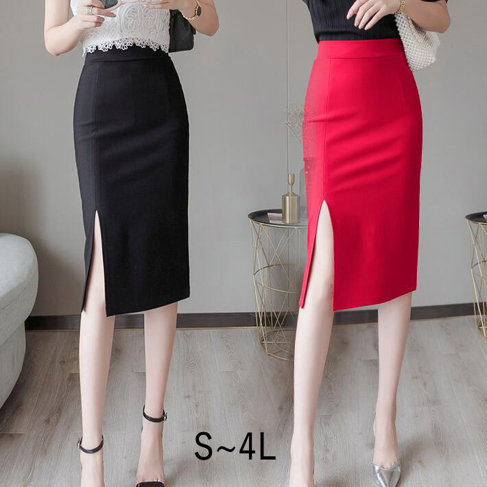スカートタイト ストレッチミディア丈 ひざ丈 ハイウエストスリット 細見え大きいサイズカジュアルデートオフィスフォマールお出かけ 通年234 5 6